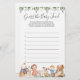 Nursery rima o chá de fraldas de adivinhação do bebê comida apresenta uma ilustração de música de berçário de aquarelas e verde-aquarela eucalyptus garland e uma elegante fonte de estilo manuscrito.