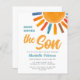 Convide a família e os amigos para o seu chá de fraldas temático com este belo convite para o chá de fraldas dos rapazes. Apresenta o texto "Aqui Vem o Filho" na tipografia da na moda com um sol de cor clara de água. Facilmente personalizável. Original Watercolor © Michele Davies.