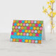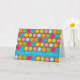 Pontos coloridos das características deste design do cartão do aniversário com esboços de contraste em um fundo castanho chocolate. A listra azul através de um mais baixo cartão caracteriza o texto funky que diz "o feliz aniversario! Feliz aniversario!"