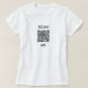 Sentimento gracioso? Faça a varredura desta camisa para revelar a mensagem escondida no código do qr. Projetado original como um formulário novo do código de barras capaz de guardarar mais informação, o código de QR (pronunciado "código mais rápido ") transformou-se uma maneira popular de comunicar em linha e fora mensagens curtas. As aplicações simples do telemóvel permitem que você faça a varredura do código com a câmera do seu telefone para revelar a mensagem.