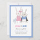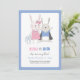 Convite azul bonito do aniversário do coelho de coelho para seus gêmeos que caracterizam mão adorável coelhos tirados do menino e da menina.