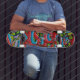 Minha foto dos grafites de uma parede em Ibiza em um skate!