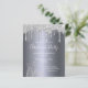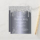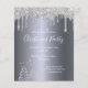 Folha de prata falsa como fundo, com sujeira de prata falsa e árvores de Natal de inverno como decoração. Com o texto: Festa de Natal escrita com uma escrita de estilo moderna e moderna, escrita à mão. Personalize e adicione os detalhes da sua festa.