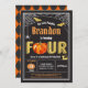 Um convite para aniversário de criança do tema de abóbora do Dia das Bruxas com designs alegres. Perfeito para outono, Halloween, época de Ação de Graças. Receba este convite fofo agora! Tema: Halloween. Cor: Preta, Dourada, Laranja. Elementos Gráficos: Abóbora, teia aranha, aranha, morcego, gato. Estilo: Divertido, giro e alegre