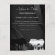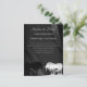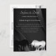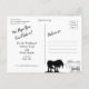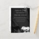 Um belo monocórnio com o convite do cartão postal de casamento. O design apresenta um unicórnio preto e prateado cruzando chifres num elegante fundo preto de espiral. Personalizável com seus detalhes de casamento. Projetado por Robin D. Cox.
