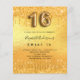 Um convite moderno, na moda e glamouroso para uma doce festa de aniversário 16, 16. Um fundo de aparência falsa de ouro com pingos de brilho sujo, aparência de pingar tinta. O nome é escrito com um moderno estilo escrito à mão. Personalize e adicione os detalhes da sua festa. O número 16 é escrito com uma fonte de estilo de balão, script.