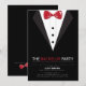 Convide-os para a despedida de solteiro com este convite elegante e sofisticado com um smoking preto e gravata borboleta vermelha.