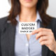 O costume imprimiu personalizou 3,38" x 2,13" modelo HORIZONTAL do vazio do CRACHÁ. O design, cria, faz seus próprios. Sua foto, imagem, texto, logotipo, gráficos na borda-à-borda da cor completa imprime na parte dianteira e no traseiro, no horizontal ou em vertical. Feito do plástico do PVC, os bens, não se desvanecerão nem não se rasgarão. Grampo retrátil, do metal, colar da correia, ou apenas crachá.