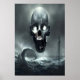 Um crânio assustador sobre o mar tempestuoso com ondas altas em uma tempestade. Esta é uma arte gerada por IA.