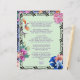 Eu adoro esta cor bonito e design de colheita floral. A poesia da Estrada Estreita. Papel personalizado.