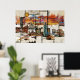 Um impressão digital multimídia de marcos e arquiteturas icônicos do Texas combinados em uma composição de montagem de cor de água.