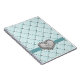 Tome notas com este o caderno espiral acolchoado do coração do cristal de rocha do azul esverdeado falso hued claro bonito e sofisticado que pode ser personalizado com seu inicial ou monograma. Este jornal monogrammed bonito com um teste padrão bling da cruz e do diamante dos criss é elegante e na moda com seus fita e pendente e broche dados forma coração da prata como o design. Trabalhos de arte e © Chrissy H. Estúdio do design, LLC. Todos os direitos reservados.