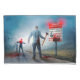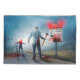 SlipperyJoe's Happy Halloween olhares brilhantes zombies sinal de quarentena de surto figura masculina sobrevivente de infecção em primeiro plano aviões máscara de gás terra manchas de sangue espalhadas misteriosamente figuras infectadas com zumbis postados armados com martelo para combater a tempestade artística escura céu desertificado paisagem LGBTQIA orgulho gay presentes