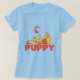 O filhote de cachorro joga os t-shirt, as sacolas, as etiquetas, as canecas, e o mais com um filhote de cachorro adorável que encontra-se em seu vestidos para trás em uma camisa vermelha que joga com uma bola de praia vermelha e branca!