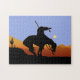 O fim da silhueta de trilha com um quebra-cabeça azul pálido