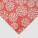 Lenço de papel do feriado com um fundo vermelho e lotes dos flocos de neve e dos círculos brancos.