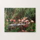 Fotografia da natureza da cor completa de flamingos cor-de-rosa bonitos em um quebra-cabeça luxúria da serra do gabarito do ajuste da lagoa. Tenha o divertimento unir este quebra-cabeça. Divertimento para todas as idades.