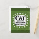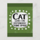Um design de animais tipográficos, irreverente e fofo, que diz "Cat Goes On Extended Crime Spree". Ele apresenta texto preto em um retângulo branco com pontos brancos engraçados e lúcidos ao seu redor, todos em um fundo verde.