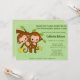 Caracteriza os macacos GÊMEOS adoráveis que balançam em um ramo. Caracteriza máscaras de um tema neutro da cor VERDE. Este convite do chá de fraldas de MonkeyHutDesigns coordena com todo o tema do macaco do safari de selva e é grande para um MENINO ou uma MENINA. (Design#: ISMO-0040)