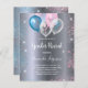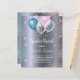 Para um chá de fraldas revelador de gênero. Um fundo metálico falso prateado. Decorados com balões claros e azuis, cor-de-rosa e branco e poeira azul e rosa falso brilhante. Personalize e adicione o nome da mãe a ser e os detalhes da festa. O nome e o texto: Rever de Gênero são escritos com um script de estilo escrito à mão