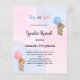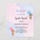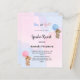 Para um chá de fraldas moderno estilo boho, gênero revela festa. Um fundo azul, cor-de-rosa, branco e aquoso e dois ursos peludos segurando balões. Personalize e adicione um nome e detalhes da parte.