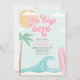 O Grande! Surfing Beach convite com ondas de turquesa e conselho cor-de-rosa.