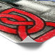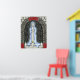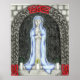 Uma estátua de oração fica cercada por velas sob uma pista de nós celtas. Apresentando alguns nós vermelhos em forma de tulipa.