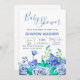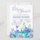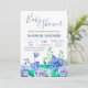 Um convite floral que caracteriza uma variedade de flores do azul contra um fundo branco. Caracterizado para um chá de fraldas, é apropriado para a maioria de celebrações felizes. (<a href='https://www.freepik.com/free-vector/wedding-invitation-with-blue-flowers_2326398.htm'>Projetado por Freepik</a>). <br/><br/>O cartão é fácil de personalizar com seus fraseio, pia batismal e cor da pia batismal<br/><br/>Não exatamente que você está procurando? Todos nossos produtos podem ser projetados para encontrar suas necessidades em nenhuma sobretaxa<br/><br/>Contacte-nos simplesmente em askcottonlamb@gmail.com. <br/><br/>Produtos de coordenação disponíveis: Apenas pergunte-nos!
