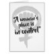 O lugar de uma mulher está no cartão CONTROL - Frase clássica branca preta com tipo em negrito e ícone gráfico como grafite.