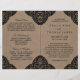 O local preto na coleção de casamentos rustic burlap é um design impressionante que apresenta um lindo fundo de efeito burlap rustico com uma trim romântica de efeito lace preto vintage. Esses cartões de programa podem ser personalizados para sua ocasião especial e tornariam a ordem perfeita para qualquer casamento rústico, chá de panela, festa de noivado, festa de aniversário e muito, muito mais. *Observe que o Zazzle só vende programas impressos para que esses programas não tenham nenhum material real de burlap ou de renda.