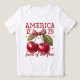 Negrito, espirituoso e encantador — esta ilustração combina a Americana com um toque de capricho! Duas cerejas vibrantes tomam o palco central, amarradas por um arco vermelho e branco com padrão de estrela. Acima deles, a "AMÉRICA" orgulha-se em letras ousadas, enquanto a "1776" serve como um nod nostálgico ao ano de nascimento da nação. A frase "Terra dos Libertos" elegantemente completa a composição, celebrando a essência da independência. Com estrelas vermelhas espalhadas a melhorar o festivo acento, esta imagem é uma perfeita homenagem ao patrimônio americano.
