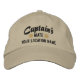 Um estilo náutico do bordado do capitão personalizado. Um boné casual de beisebol bordado de moda original certamente causaria uma impressão sobre ou fora do barco. Use o link "Mensagem" para entrar em contato conosco com suas solicitações especiais de design ou para obter assistência com qualquer necessidade do seu projeto de personalização.