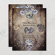 Pumpkins, crânios cor laranja e roxo, convite para festa do Dia das Bruxas. Adicione texto a ambos os lados, garantindo que todos os detalhes da parte, registro de presentes, rsvp, código de vestimenta sejam incluídos.