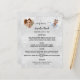 Um elegante e glamouroso menu de casamento. Personalize e adicione suas fotos, nomes, data e menu de casamento. Fundo de aspecto fino prateado, decorado com brilho sujo, faíscas