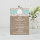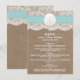 A coleção de casamentos de praias de areia turquesa e dólar é um design impressionante que apresenta um adorável fundo de efeito de burvolta rústica com uma trim romântica de efeito de renda branca vintage terminada com uma fita de areia e de turquesa impressionante. Esses cartões de menu podem ser personalizados para sua ocasião especial e tornariam a modelo perfeita para menus de casamento, menus de chá de panela, menus de festa de noivado, menus de festa de aniversário e muito, muito mais. *Observe que o Zazzle só vende produtos impressos para que este item não tenha nenhum material real de burlap, renda, dólar de areia ou fita.