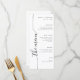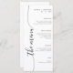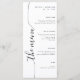Um menu de casamento minimalista único projetado com uma escrita caligráfica vertical elegante que adiciona um toque de sofisticação e classe, tornando-o uma escolha perfeita para qualquer tema de casamento.