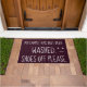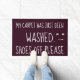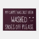O seu tapete acabou de ser lavado? Você está feliz que todas aquelas manchas desagradáveis desapareceram? Então você precisa desta legal porta de cor de ameixa que diz: "MEU CARPETETO ACABOU DE SER LAVADO. CALÇADOS DESLIGADOS POR FAVOR." em letras grandes brancas ao lado de um rosto sorridente feliz.