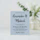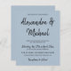 Elegante trendy tipografia do orçamento barato convite de casamento em simples carta azul empoeirada com nomes de noiva e noivo com roteiro de caligrafia. ++++++++++++++++++++++ Você pode alterar as cores do texto e do plano de fundo após selecionar a opção PERSONALIZAR mais. +++++++++ O convite é adequado para qualquer época - primavera, verão, outono, inverno - recepção de casamento interior.