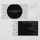 Um design profissional que caracteriza um teste padrão simples de tesouras pretas em um fundo branco com um grande círculo preto no meio para seus nome e profissão. Isto seria apropriado para qualquer um que trabalha com tesouras tais como um cabeleireiro, um barbeiro, um alfaiate ou uma costureira.