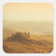 Vedante de um nascer do sol sobre a famosa vila Podere il Belvedere numa paisagem com colinas estéreis e rolantes no Val d'Orcia, na Toscana, Itália.