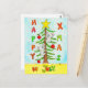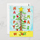 Este cartão-postal bonito, desenhado à mão num estilo de desenho animado e colorido em aquarelas, mostra dois pequenos ursos koala pendurados numa árvore de natal decorada com três bolas vermelhas e uma grande estrela amarela. No lado esquerdo da árvore você pode ler a palavra "Happy" escrita verticalmente em tons de verde, vermelho e laranja. À direita, a palavra "Natal", soletrada em "Xmas", e na parte inferior do cartão "em julho", todas coloridas no mesmo estilo. O chão em que a árvore se apoia é amarelo. O fundo é azul claro. Há flocos de neve espalhados aqui e ali, e deitados nos galhos das árvores e cobrindo o chão. Nenhum urso solto foi solicitado no fazer deste cartão.