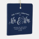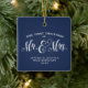 Presente perfeito para os recém-casados ou sua noiva ou noiva - um ornamento de dois lados que apresenta um lugar para uma foto e "nosso primeiro Natal como Sr. Tratamento de tipo & Sra.". A cor de fundo é editável clicando em "personalizar".