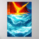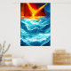 O oceano com ondas está queimando. Esta é uma arte gerada por IA.