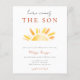 Celebre a chegada iminente do seu raio de sol com o nosso Chá de fraldas "Aqui Vem o Filho" Convite! Este encantador convite captura o calor e a alegria de um chá de fraldas temático, perfeito para acolher o seu pequeno no mundo. Espalhe a luz do sol e as vibrações de ventre com o nosso moderno convite para Chá de fraldas Sunshine Boho Cute, "Aqui Vem o Filho", e deixe a celebração começar!