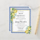 Quando ela descobriu que o tema do Chá de panela de limão é o almoço de noiva de verão perfeito. A fruta de citrinos legal e refrescante cria sempre belas exibições e refrescos. A coleção de limões da Jenny pega limões de aquarela e os emparelha com azulejos azuis mediterrânicos. Neste design, os azulejos criam um quadro azul. Uma fina armação de ouro a eleva. Dois buquês de limão adicionam um toque floral. Ela achou que o "Main Squeeze" está escrito no topo. O resto dos detalhes do almoço.