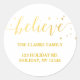 Use este ouro acreditam a etiqueta do endereço do feriado mandar os cartões de natal de harmonização em nossa loja. O © de Elke Clarke imprimiu o efeito da folha de ouro em uma superfície lustrosa. A pia batismal bonito da escrita para a palavra "acredita". Teste padrão dos confetes da estrela. Endereço do remetente customizável.