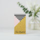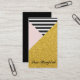 Cartão de visita elegante. O ouro de brilho do falso, cora rosa, modelo de cartão de negócios geométrico listrado preto e branco.