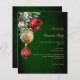 Elegante Convite de festas de Natal para Negócios Convide sua equipe a celebrar a temporada de festas com este na moda e um convite de festas de Natal moderno. Apresentando um fundo verde rústico e incolor, o design é maravilhosamente decorado com borbulhas festivas vermelhas e douradas, verde e um cone de pinho para um toque clássico. Personalize-o com os detalhes do evento de sua empresa para criar um convite profissional e sofisticado, perfeito para a reunião de feriados corporativos. 1 folha = 1 convite impresso de borda a borda.