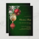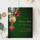 Para uma festa de Natal com familiares e amigos. Um fundo verde incolor. Decorado com borbulhas vermelhas e douradas e um pouco de verde e um pinho. Personalize e adicione os detalhes. 1 folha = 1 convite impresso de borda a borda.