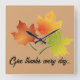 Abrace a beleza do outono e infunda seu espaço com inspiração personalizada. Nosso relógio de parede quadrado com folhas de outono e uma oração/citação personalizável é um símbolo do esplendor da natureza e um testamento para suas próprias crenças e valores. Que este encantador relógio se torne uma parte apreciada de sua vida e arredores.